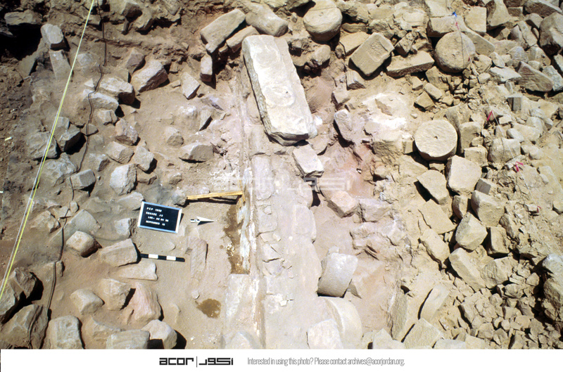 Aerial view to west. - Sq. J3. Loci 02(wall), 04, & 06.