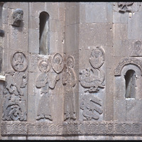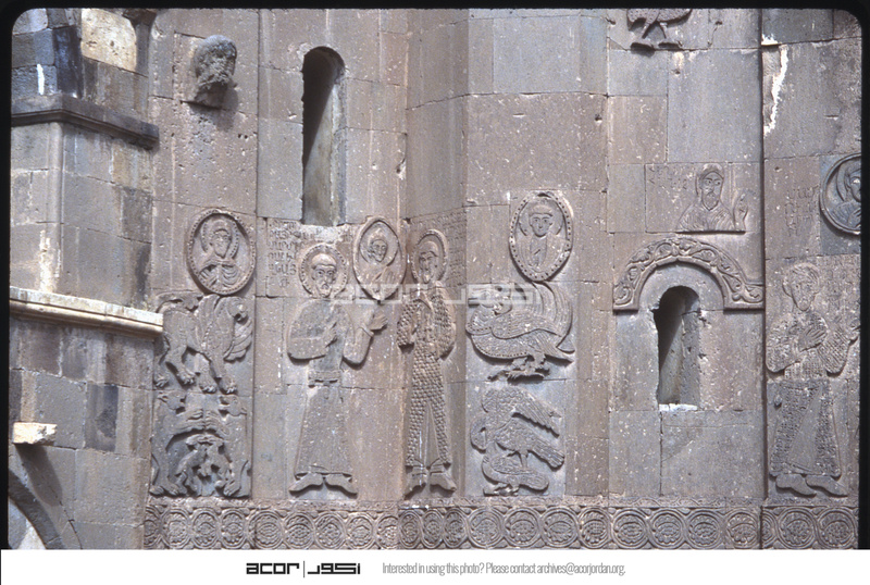 تفاصيل نقوش بارزة تصور القديس إسحاق وحمازة أرتزروني على كنيسة الصليب المقدس