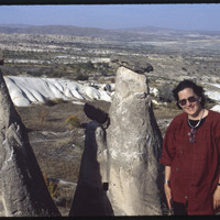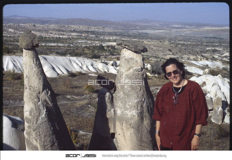 بربرا أ. بورتر تقف بجانب التكوينات الجيولوجية الفريدة في كابادوكيا