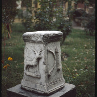 شاهد يحتوي على نقوش لغزال وقوس وسهم