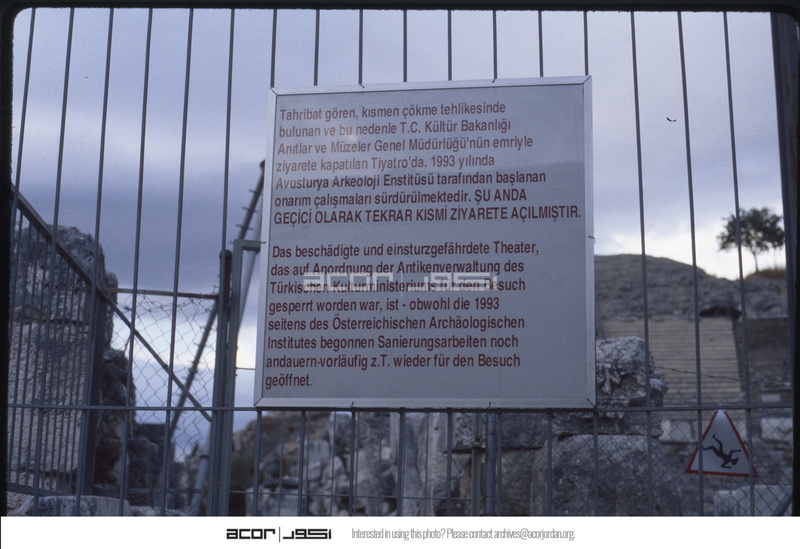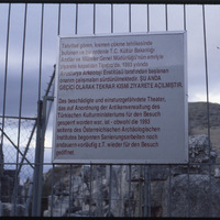 لافتة باللغة التركية على سياج الموقع الأثري