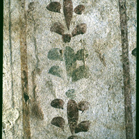 تفاصيل رسومات زهور على حائط جصي في بيت التراس