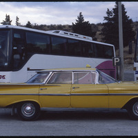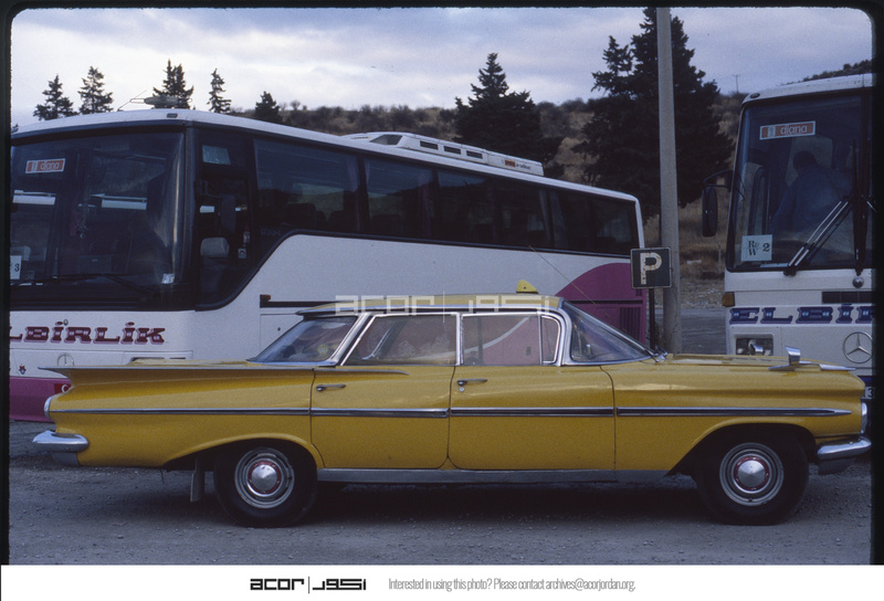سيارة أجرة أمام الباص السياحي
