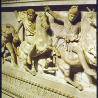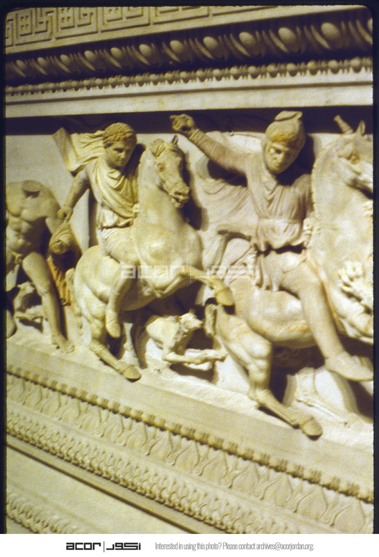 تفاصيل نقش بارز على تابوت صيدا الليسي يصور مشهد صيد
