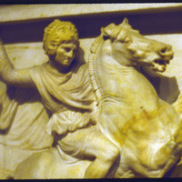 تفاصيل نقش بارز على تابوت صيدا الليسي يصور مشهد من ساحة المعركة