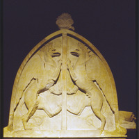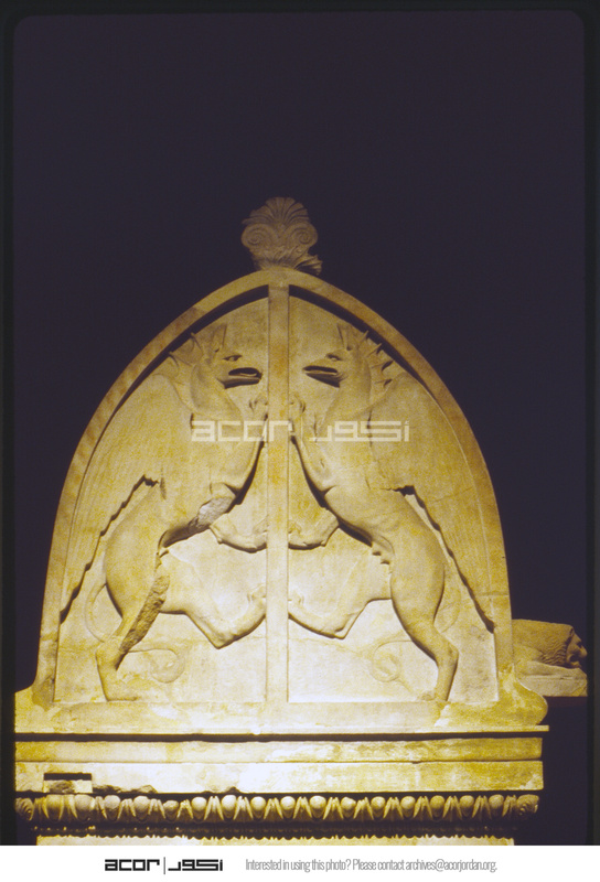 تفاصيل نقوش بارزة على تابوت الليسي في صيدا يجسد مخلوقات أسطورية