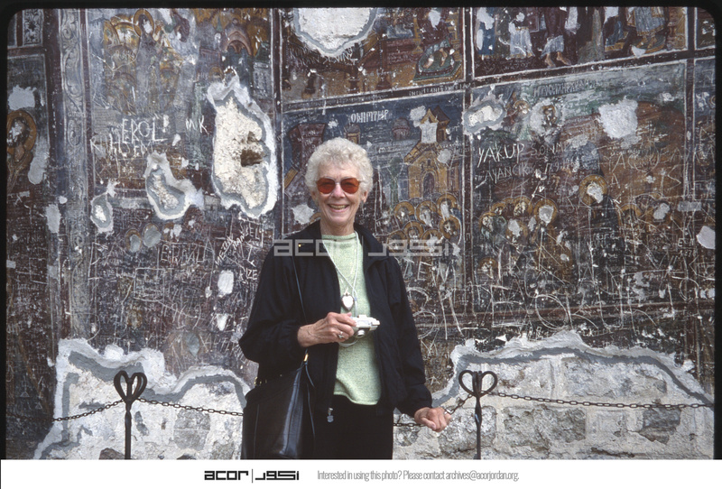 إمرأة أمام اللوحات الجدارية في دير سوميلا