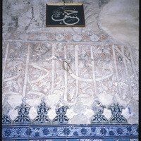 البلاط الأزرق والخط العربي في مسجد المرادية