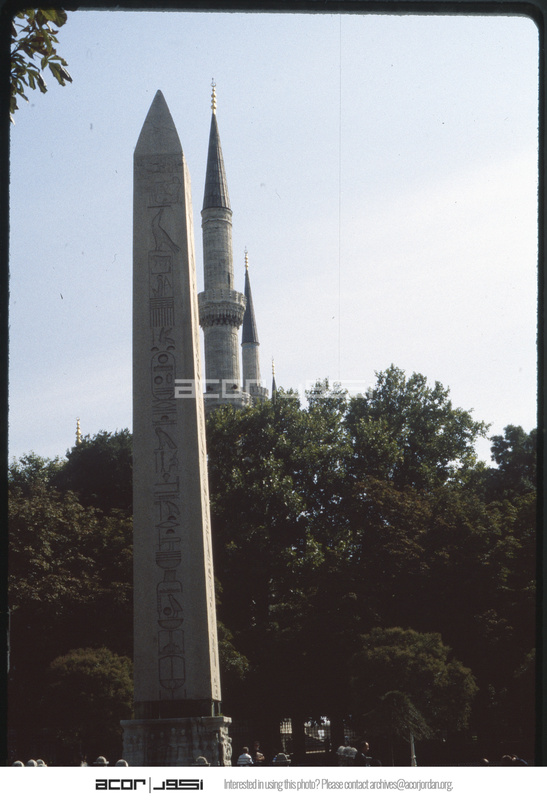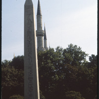 مسلة ثيودوسيوس في ميدان سباق الخيل مع مآذن جامع السلطان أحمد