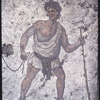 تفاصيل فسيفساء تصور رجلاً يقود جمل