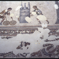 تفاصيل فسيفساء لأطفال يلعبون بأطواق