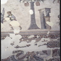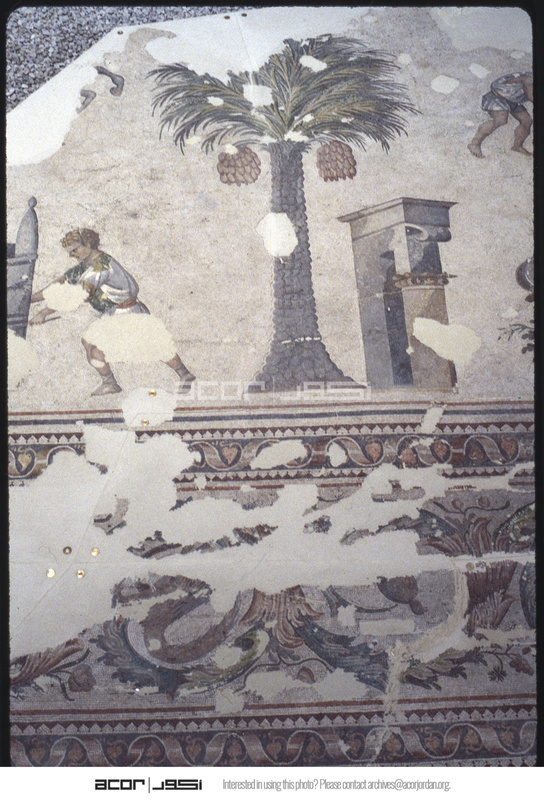 التفاصيل فسيفساء تصور شجرة نخيل وقوس النصر
