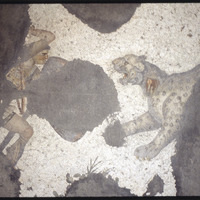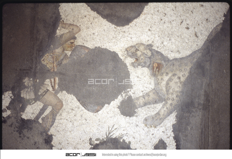 تفاصيل فسيفساء تظهر رجلاً يقاتل فهد
