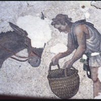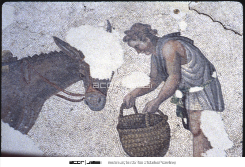 فسيفساء تصور شخصًا يطعم حمارًا