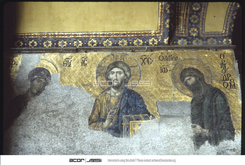 تفاصيل فسيفساء يسوع مع مريم العذراء ويوحنا المعمدان