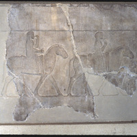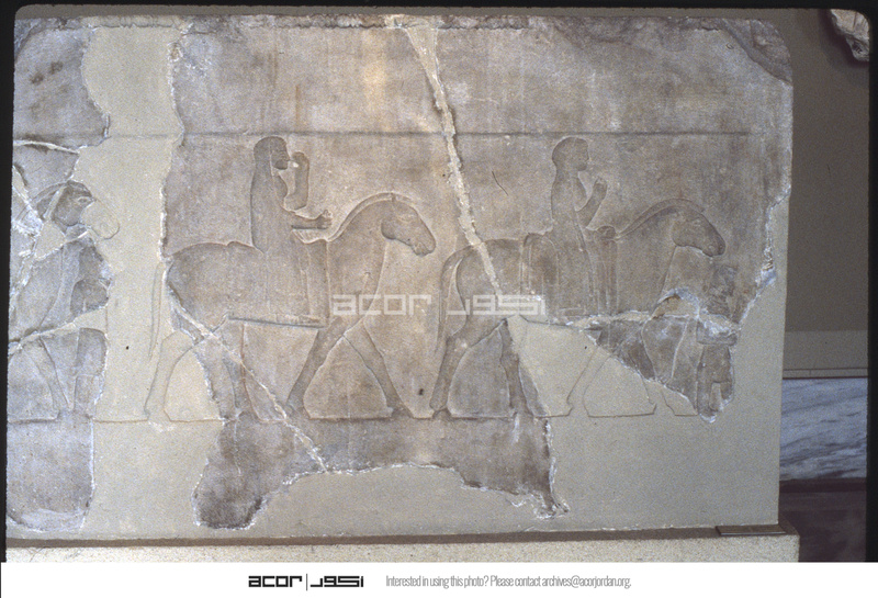 تفاصيل نقش بارز تالف يصور رجال يركبون الخيل