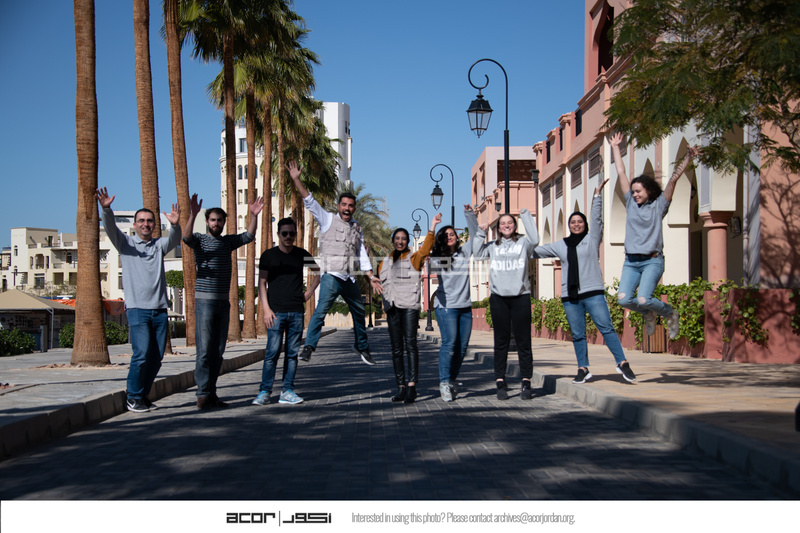 الأردن. العقبة، فريق عمل مشروع استدامة الإرث الثقافي بمشاركة المجتمعات المحلية خلال تصوير فيديو مع فريق عقباوي