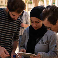 الأردن. العقبة، فريق عمل مشروع استدامة الإرث الثقافي بمشاركة المجتمعات المحلية خلال تصوير فيديو مع فريق عقباوي