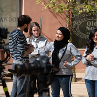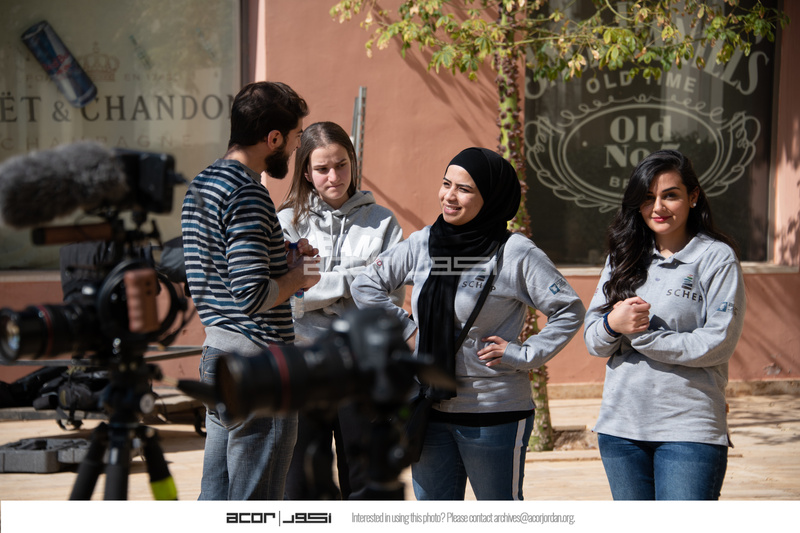 الأردن. العقبة، فريق عمل مشروع استدامة الإرث الثقافي بمشاركة المجتمعات المحلية خلال تصوير فيديو مع فريق عقباوي