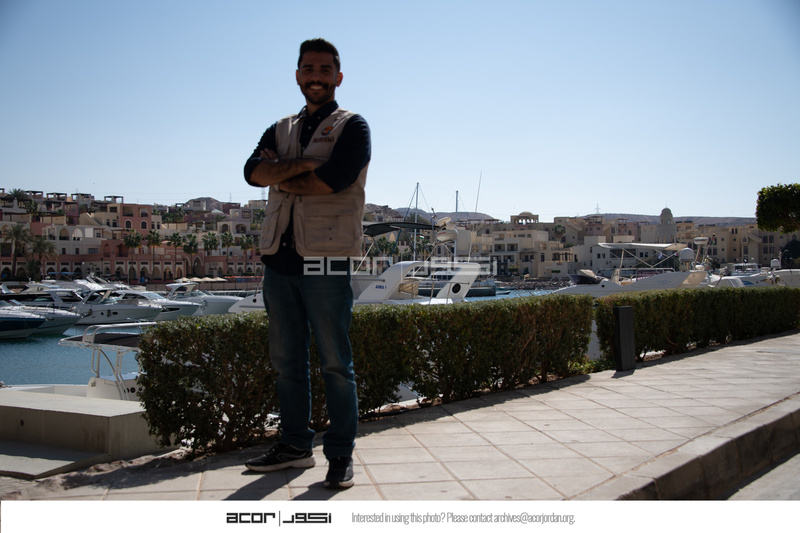 الأردن. العقبة، فريق عمل مشروع استدامة الإرث الثقافي بمشاركة المجتمعات المحلية خلال تصوير فيديو مع فريق عقباوي