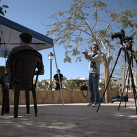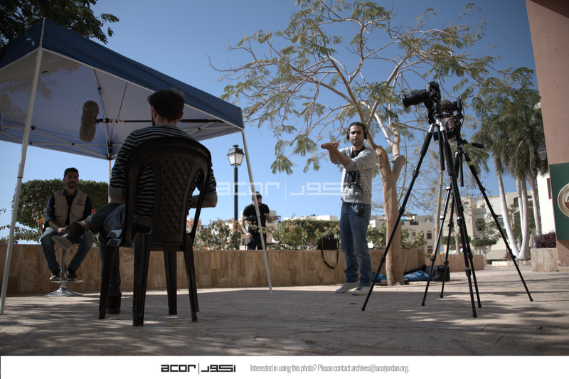 الأردن. العقبة، فريق عمل مشروع استدامة الإرث الثقافي بمشاركة المجتمعات المحلية خلال تصوير فيديو مع فريق عقباوي