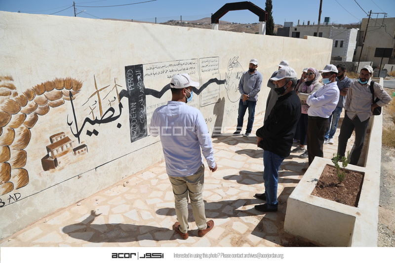 جانب من زيارة فريق عمل المركز الأمريكي للأبحاث ومشروع استدامة الإرث الثقافي بمشاركة المجتمعات المحلية وممثلون من مديرية آثار الطفيلة من دائرة الآثار العامة في تشرين الأول من عام 2020 لتفقد أعمال التطوير في موقع بصيرا الأثري والمسار السياحي المقترح في المنطقة والتي سيطلق عليها مسار آدوم عاصمة مدينة بصيرا.