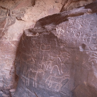 التقط الصورة فريق التواصل من مشروع استدامة الإرث الثقافي بمشاركة المجتمعات المحلية خلال زيارة ميدانية إلى وادي رم في تموز 2019. عمل المركز الأمريكي للأبحاث من خلال مشروع استدامة الإرث الثقافي بمشاركة المجتمعات المحلية ضمن تعاون مع المشروع "التدريبي الأول من نوعه في توثيق النقوش الصخرية في وادي رم" متمثلاً هذا الدعم في إنشاء مسارات سياحية ودورات تدريبية مكثفة لأبناء المجتمعات المحلية في تقييم وتوثيق الفن الصخري في وادي رم وعقد العديد من البرامج التوعية الأثرية والأنشطة الأخرى.