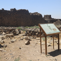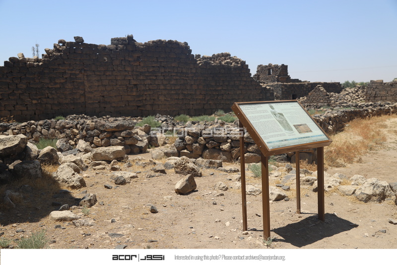 الأردن. أم الجمال، لوحة تفسيرية في موقع أم الجمال الأثري