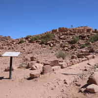 الأردن. البترا، معبد الأسود المجنحة من الأسفل، يظهر في الصورة لوحة تم تركيبها بدعم من المركز الأمريكي للأبحاث من خلال مشروع استدامة الإرث الثقافي بمشاركة المجتمعات المحلية ومسار الزوار