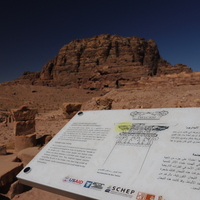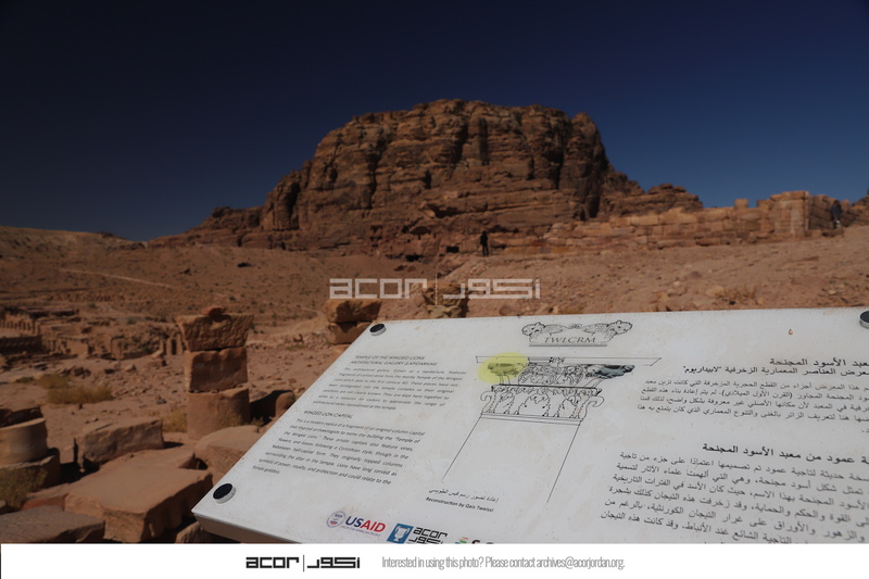 الأردن. البترا، معبد الأسود المجنحة، لابيداريوم ولوحة تم تركيبها بدعم من المركز الأمريكي للأبحاث من خلال مشروع استدامة الإرث الثقافي بمشاركة المجتمعات المحلية