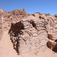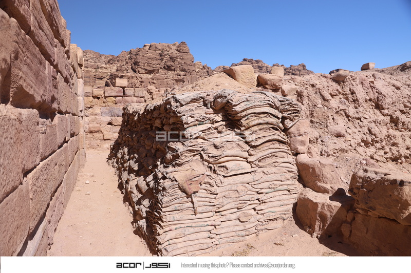 الأردن. البترا، أكياس رملية تم تعبئتها من قبل سيدات محليات لدعم أعمال تطوير معبد الأسود المجنحة
