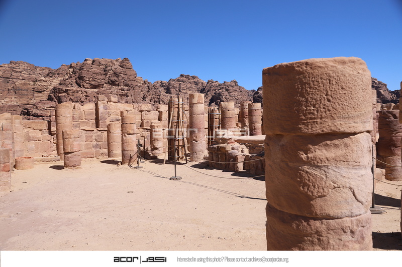 الأردن. البترا، أعمال تدعيم الأعمدة وترميمها في معبد الأسود المجنحة بدعم من المركز الأمريكي للأبحاث من خلال مشروع استدمة الإرث الثقافي بمشاركة المجتمعات المحلية