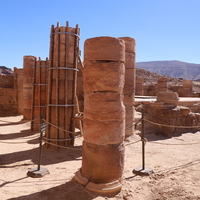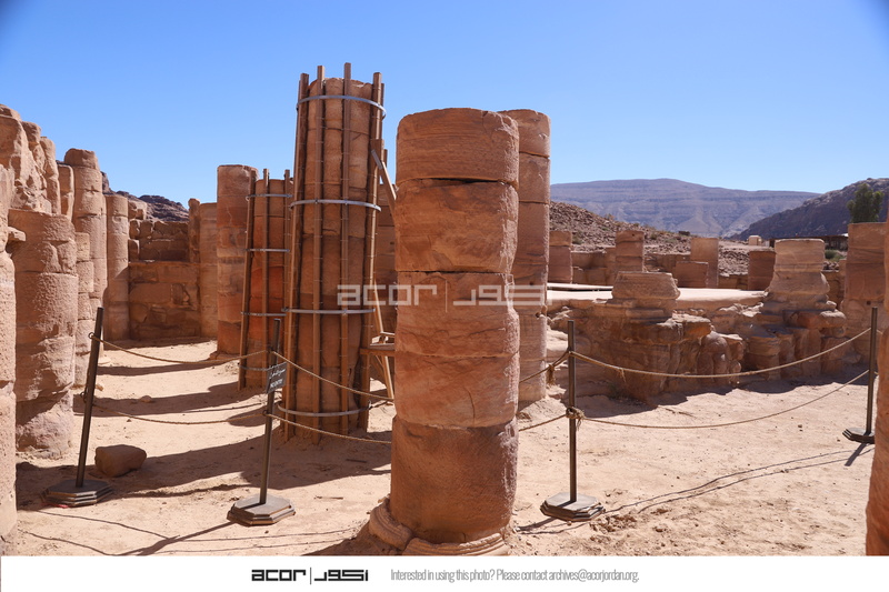 الأردن. البترا، أعمال تدعيم الأعمدة وترميمها في معبد الأسود المجنحة بدعم من المركز الأمريكي للأبحاث من خلال مشروع استدمة الإرث الثقافي بمشاركة المجتمعات المحلية