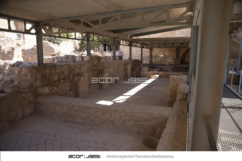 الأردن. مادبا، متنزه مادبا الأثري الغربي، أرضيات فسيفسائية في القصر المحترق، الجناح الشرقي