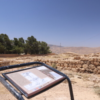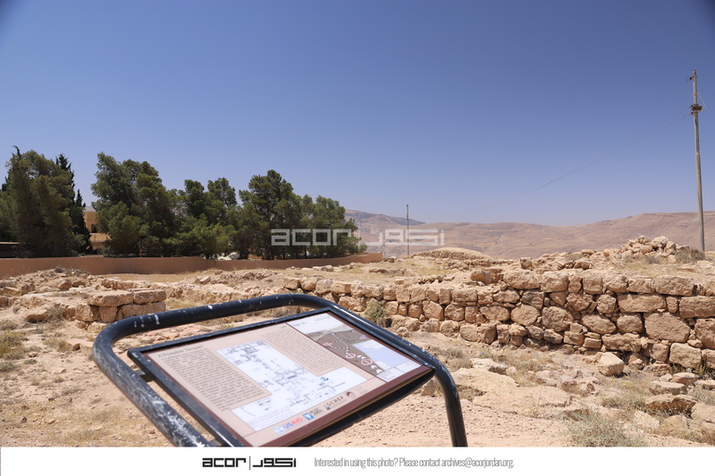 الأردن. بصيرا، لوحة تفسيرية في موقع بصيرا الأثري من تصميم وتركيب المركز الأمريكي للأبحاث من خلال مشروع استدامة الإرث الثقافي بمشاركة المجتمعات المحلية