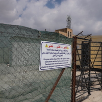 الأردن. بيت راس، لوحة تحذيرية مركبة خارج مدخل محيط مدفن بيت راس الأثري