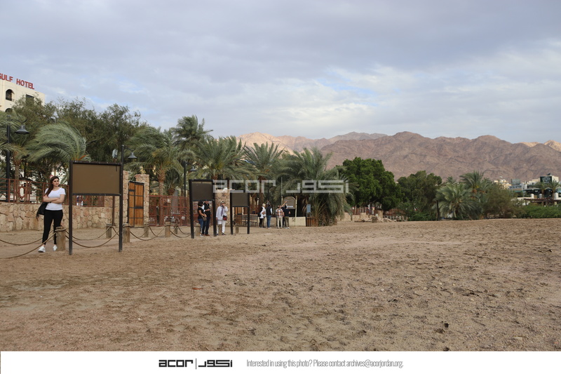 أعضاء من فريق مشروع استدامة الإرث الثقافي بمشاركة المجتمعات المحلية خلال زيارتهم إلى مدينة آيلة الإسلامية في العقبة.