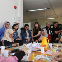 الأردن. العقبة، أعضاء فريق مشروع استدامة الإرث الثقافي بمشاركة المجتمعات المحلية خلال المشاركة في مجموعة من التجارب التي تقدمها عقباوي