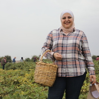 الأردن. غور الصافي، فريق المركز الأمريكي للأبحاث وأعضاء من فريق مشروع استدامة الإرث الثقافي بمشاركة المجتمعات المحلية والوكالة الأمريكية للتنمية الدولية في زيارتهم إلى مطبخ الصافي لتجربة مجموعة من تجارب السياحة الزراعية