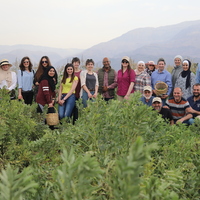 الأردن. غور الصافي، فريق المركز الأمريكي للأبحاث وأعضاء من فريق مشروع استدامة الإرث الثقافي بمشاركة المجتمعات المحلية والوكالة الأمريكية للتنمية الدولية في زيارتهم إلى مطبخ الصافي لتجربة مجموعة من تجارب السياحة الزراعية