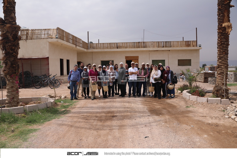الأردن. غور الصافي، فريق المركز الأمريكي للأبحاث وأعضاء من فريق مشروع استدامة الإرث الثقافي بمشاركة المجتمعات المحلية والوكالة الأمريكية للتنمية الدولية في زيارتهم إلى مطبخ الصافي لتجربة مجموعة من تجارب السياحة الزراعية