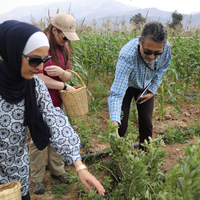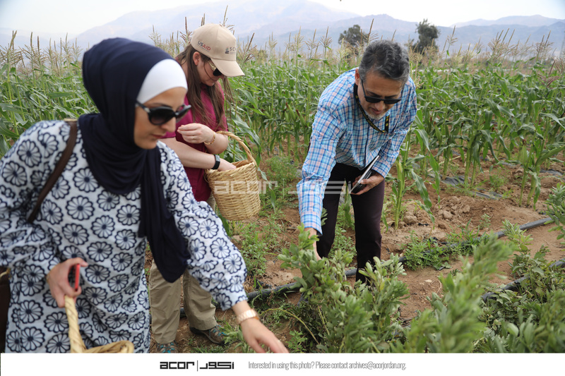 الأردن. غور الصافي، فريق المركز الأمريكي للأبحاث وأعضاء من فريق مشروع استدامة الإرث الثقافي بمشاركة المجتمعات المحلية والوكالة الأمريكية للتنمية الدولية في زيارتهم إلى مطبخ الصافي لتجربة مجموعة من تجارب السياحة الزراعية