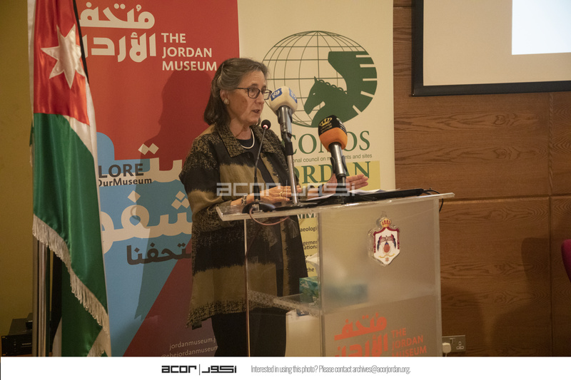 الأردن. عمان، متحف الأردن، كلمة مدير المركز الأمريكي للأبحاث باربرا بورتير في حفل إطلاق أعمال المجلس العالمي للمعالم والمواقع الأردن