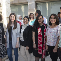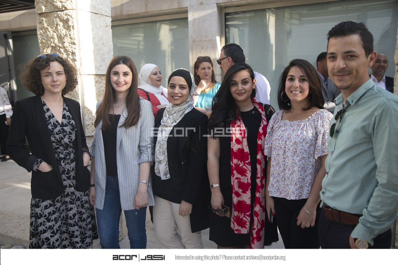 الأردن. عمان، متحف الأردن، أعضاء من فريق مشروع استدامة الإرث الثقافي بمشاركة المجتمعات المحلية في حفل إطلاق أعمال المجلس العالمي للمعالم والمواقع الأردن