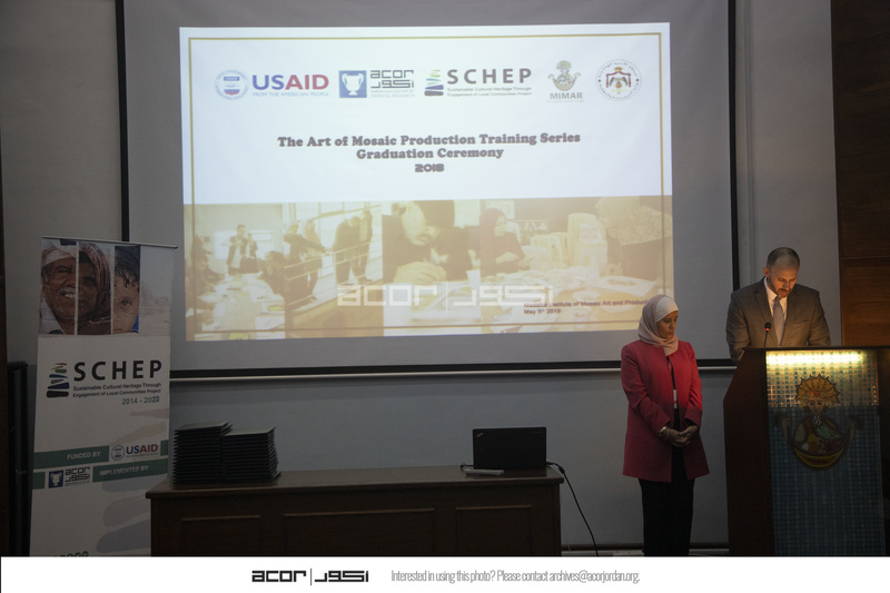 في 5 آيار 2019 احتفل مشروع استدامة الإرث الثقافي بمشاركة المجتمعات المحلية بتخريج 30 معلم ومعلمة من دورة "فن إنتاج اللوحات الفسيفسائية" وذلك في معهد فن الفسيفساء والترميم/مادبا، عقب الاحتفال جولة للمعلمين في متنزه مادبا الأثري. ساهمت دورة "فن إنتاج اللوحات الفسيفسائية" في زيادة معرفة المعلمين بتاريخ فن الفسيفساء ونظريات تشكيل اللوحات الفسيفسائية في الأردن وتطوير مهاراتهم العملية من خلال إنشاء لوحات خاصة بهم. والأهم من هذا كله أنه أصبح بإمكانهم تبادل هذه المعرفة مع طلبتهم والمساعدة في خلق جيل قادر على المحافظة على إرثنا الأردني. انضم إلى هذا الحفل محافظ مادبا حسن باشا القيام وعميد معهد فن الفسيفساء والترميم/مادبا أحمد العمايرة وكايل بادجيت من الوكالة الأمريكية للتنمية الدولية والدكتورة باربرا بورتر من المركز الأمريكي للأبحاث والسيد نزار العدرابة من مشروع "استدامة الإرث الثقافي بمشاركة المجتمعات المحلية لإلقاء كلمات لدعم المشاركين.