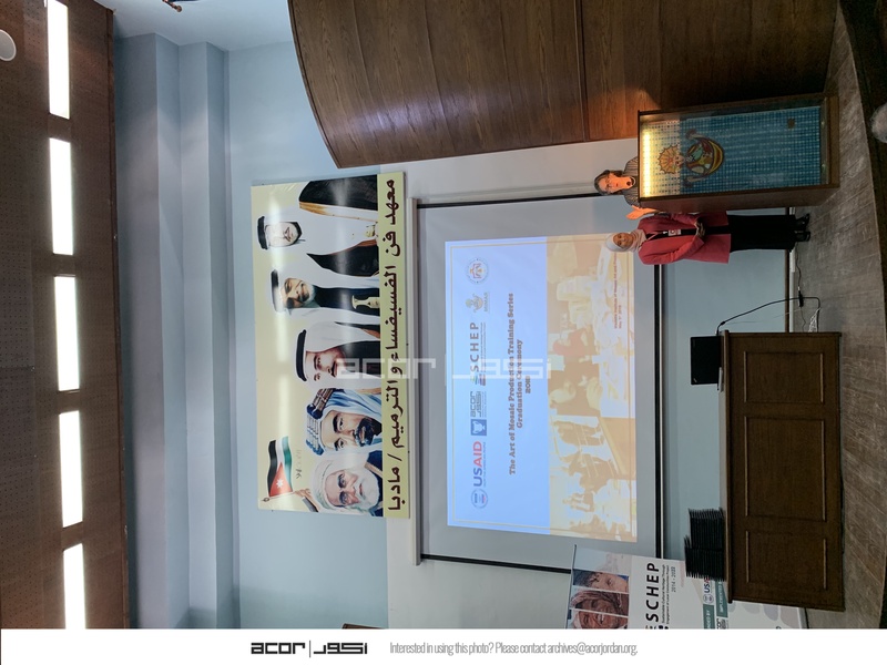في 5 آيار 2019 احتفل مشروع استدامة الإرث الثقافي بمشاركة المجتمعات المحلية بتخريج 30 معلم ومعلمة من دورة "فن إنتاج اللوحات الفسيفسائية" وذلك في معهد فن الفسيفساء والترميم/مادبا، عقب الاحتفال جولة للمعلمين في متنزه مادبا الأثري. ساهمت دورة "فن إنتاج اللوحات الفسيفسائية" في زيادة معرفة المعلمين بتاريخ فن الفسيفساء ونظريات تشكيل اللوحات الفسيفسائية في الأردن وتطوير مهاراتهم العملية من خلال إنشاء لوحات خاصة بهم. والأهم من هذا كله أنه أصبح بإمكانهم تبادل هذه المعرفة مع طلبتهم والمساعدة في خلق جيل قادر على المحافظة على إرثنا الأردني. انضم إلى هذا الحفل محافظ مادبا حسن باشا القيام وعميد معهد فن الفسيفساء والترميم/مادبا أحمد العمايرة وكايل بادجيت من الوكالة الأمريكية للتنمية الدولية والدكتورة باربرا بورتر من المركز الأمريكي للأبحاث والسيد نزار العدرابة من مشروع "استدامة الإرث الثقافي بمشاركة المجتمعات المحلية لإلقاء كلمات لدعم المشاركين.