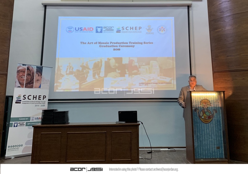 في 5 آيار 2019 احتفل مشروع استدامة الإرث الثقافي بمشاركة المجتمعات المحلية بتخريج 30 معلم ومعلمة من دورة "فن إنتاج اللوحات الفسيفسائية" وذلك في معهد فن الفسيفساء والترميم/مادبا، عقب الاحتفال جولة للمعلمين في متنزه مادبا الأثري. ساهمت دورة "فن إنتاج اللوحات الفسيفسائية" في زيادة معرفة المعلمين بتاريخ فن الفسيفساء ونظريات تشكيل اللوحات الفسيفسائية في الأردن وتطوير مهاراتهم العملية من خلال إنشاء لوحات خاصة بهم. والأهم من هذا كله أنه أصبح بإمكانهم تبادل هذه المعرفة مع طلبتهم والمساعدة في خلق جيل قادر على المحافظة على إرثنا الأردني. انضم إلى هذا الحفل محافظ مادبا حسن باشا القيام وعميد معهد فن الفسيفساء والترميم/مادبا أحمد العمايرة وكايل بادجيت من الوكالة الأمريكية للتنمية الدولية والدكتورة باربرا بورتر من المركز الأمريكي للأبحاث والسيد نزار العدرابة من مشروع "استدامة الإرث الثقافي بمشاركة المجتمعات المحلية لإلقاء كلمات لدعم المشاركين.