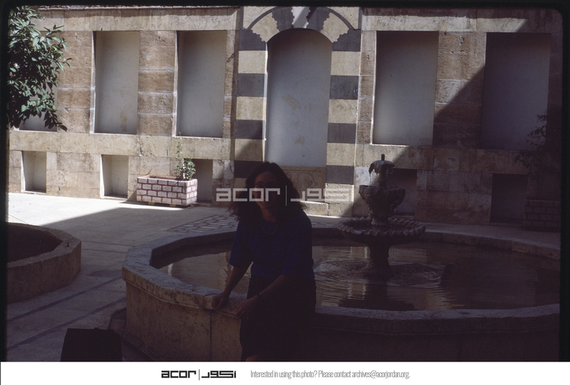 بربرا أ. بورتر تجلس على حافة نافورة الماء "البحرة" في بيت أجقباش