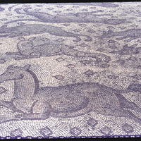 أرضية فسيفسائية تصور حمار وحيوانات أخرى في متحف حلب الوطني