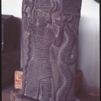 نقش بارز يصور إلهًا مسلحًًا بفأس يقتل ثعبانًا